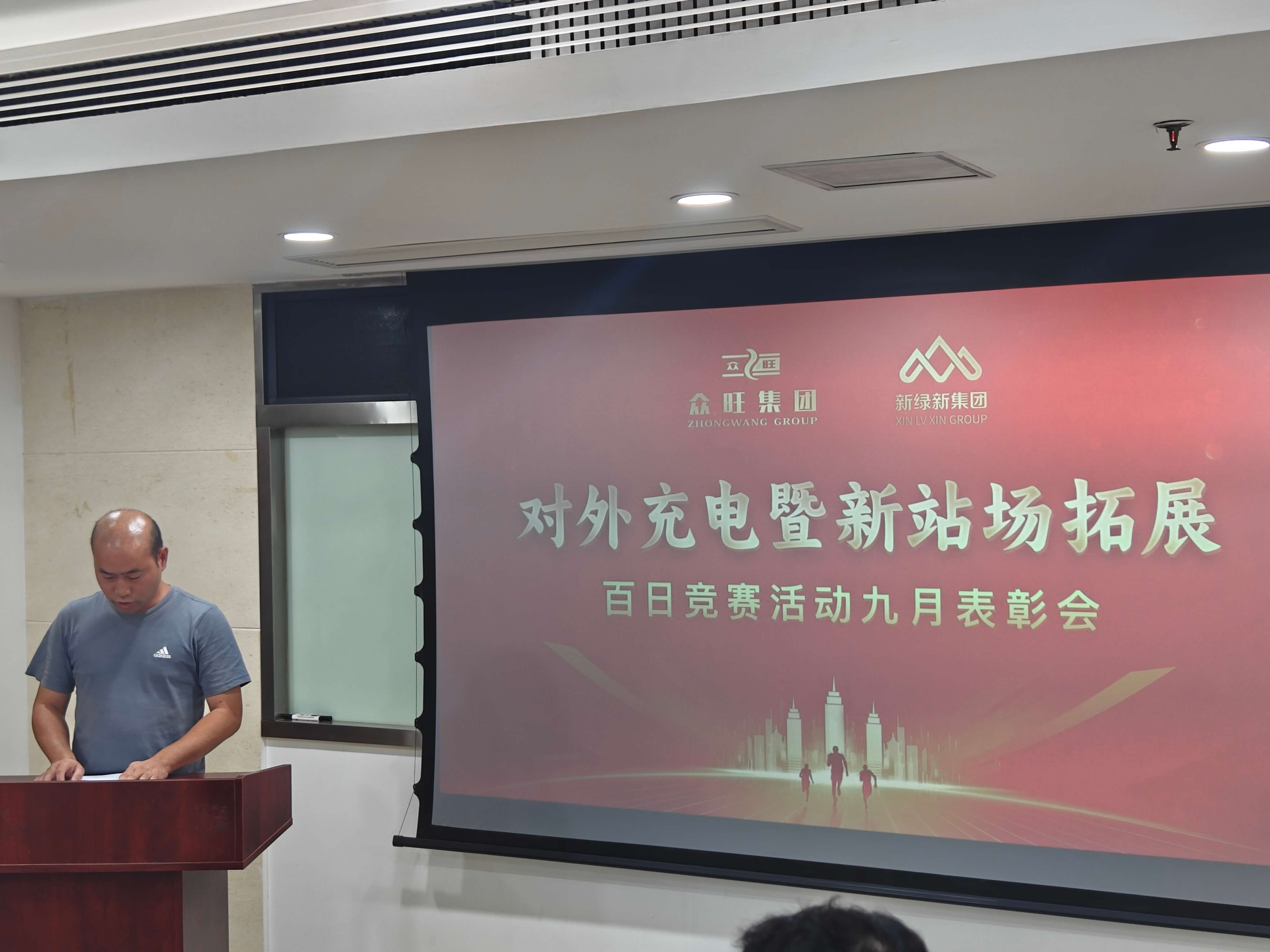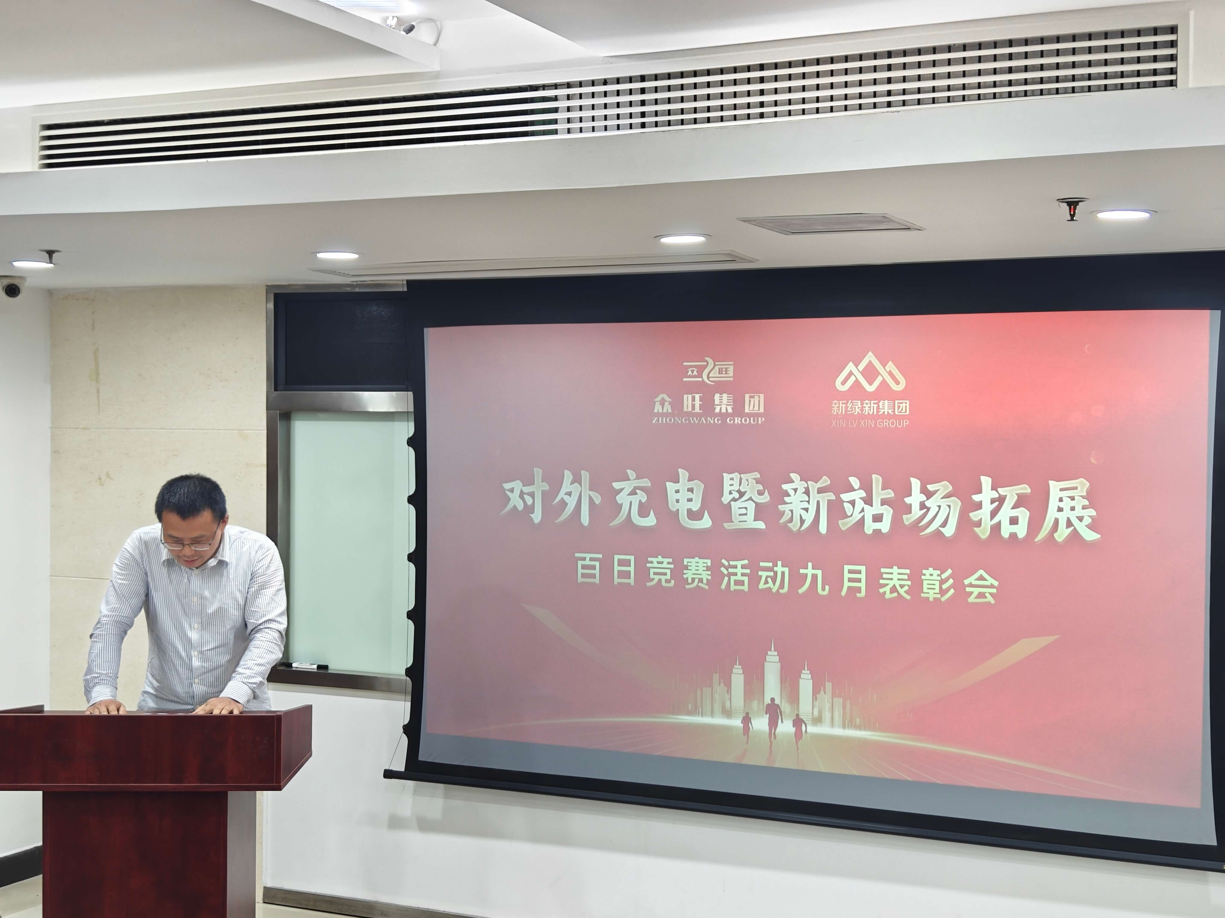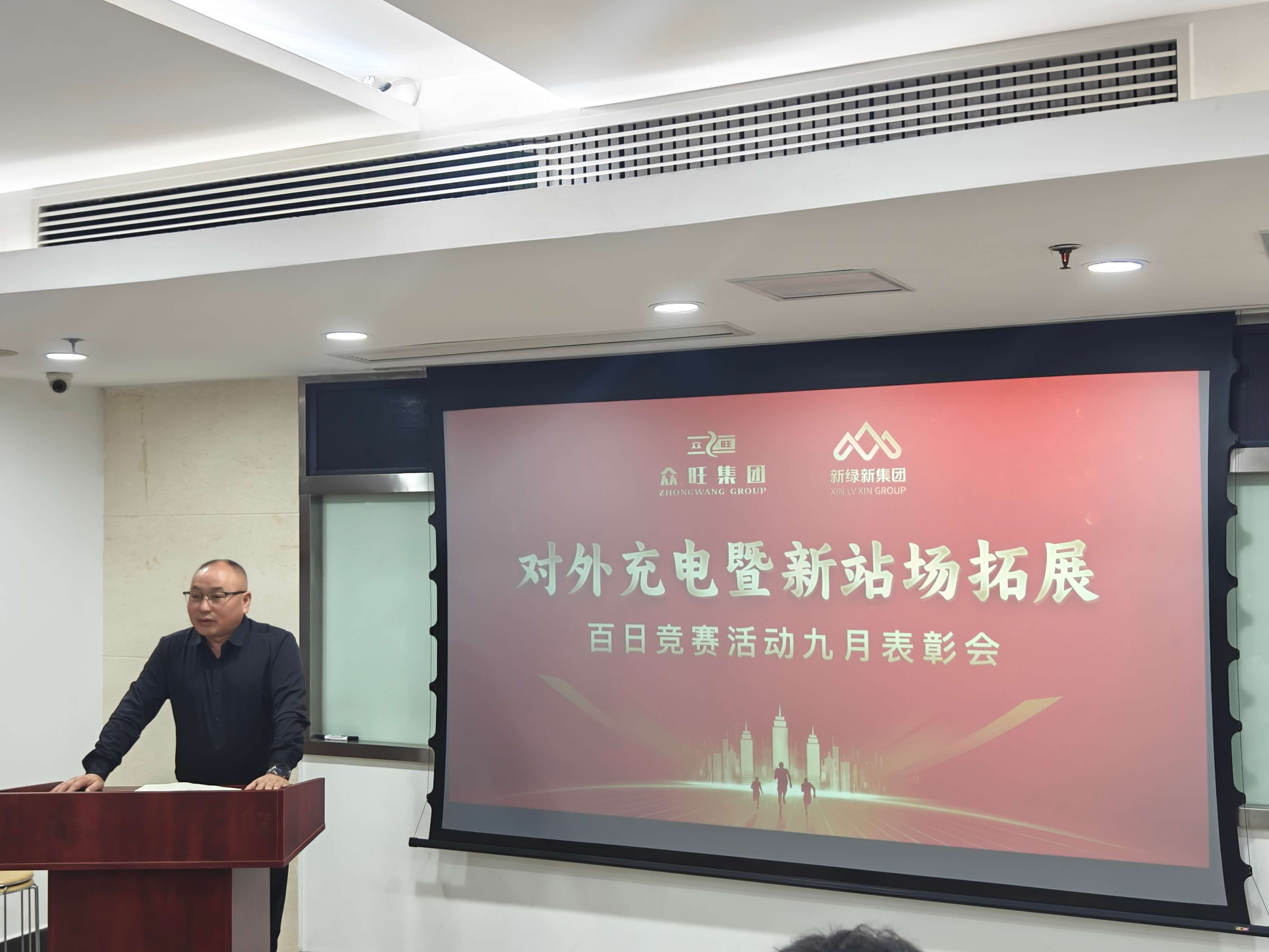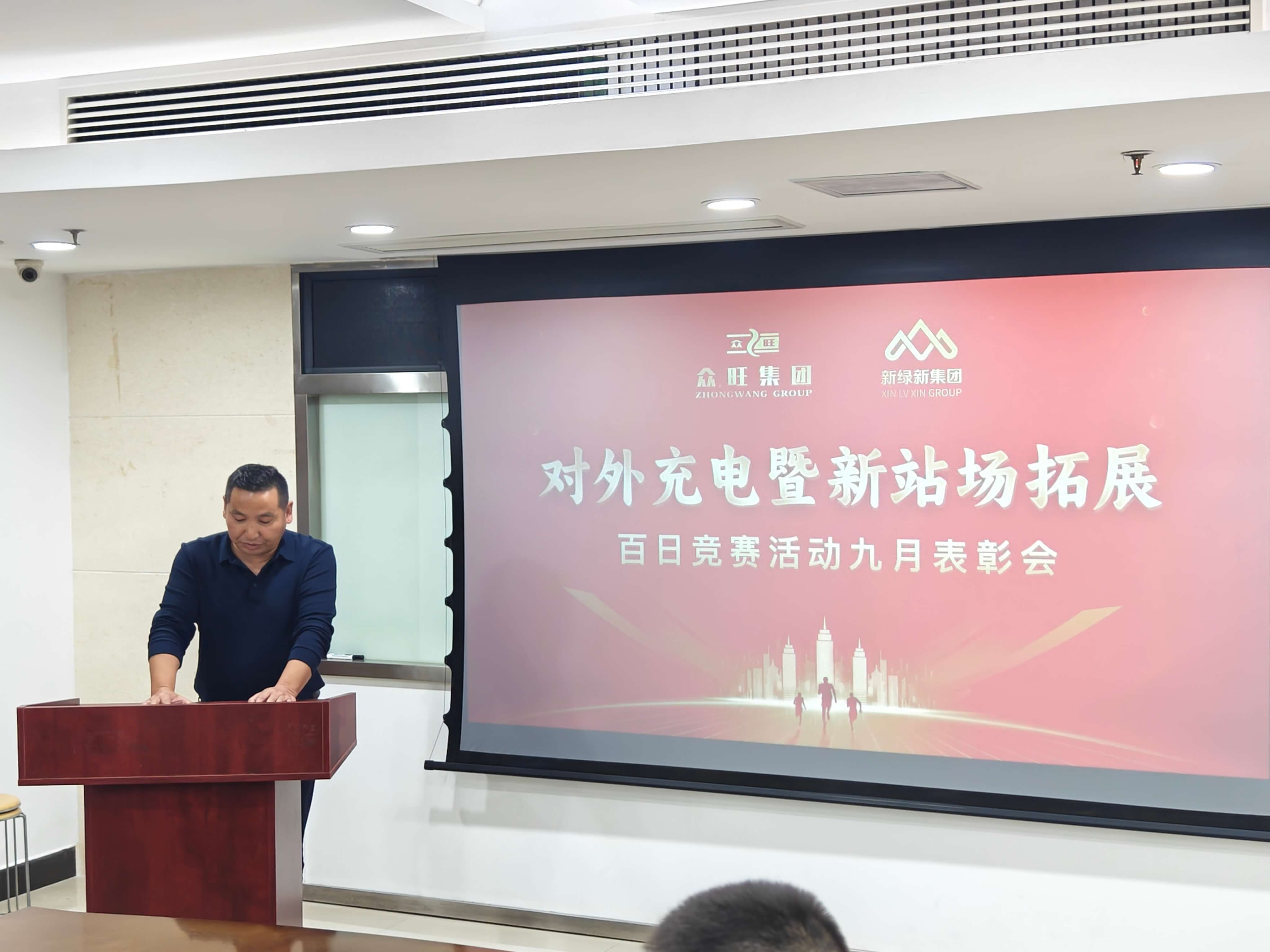 九月金秋结硕果,竞赛征程启新篇。为深度盘活存量站场、加速拓展增量站场,全面掀起“人人背指标、站站创效益”的竞赛热潮,并围绕“抢市场、增电量、保收益”核心目标,新绿新能源公司于九月正式启动“提升对外充电量和拓展新站场百日竞赛”,旨在实现公司对外充电量阶梯式跃升,并为 2026 年经营目标夯实优质站场基础。目前竞赛首月圆满收官,公司于10月16日召开九月表彰会,全体员工齐聚,共庆首捷、共话奋进。